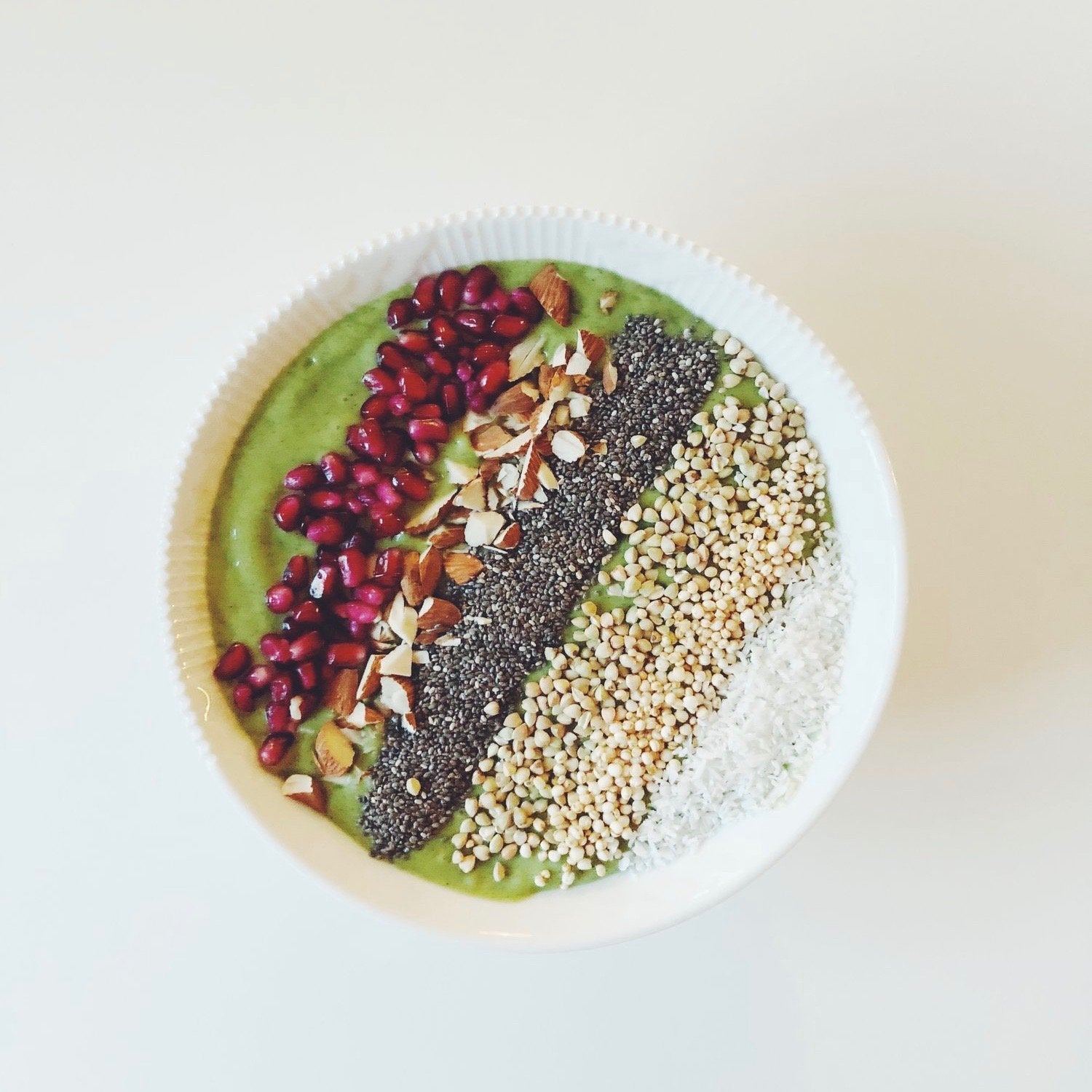 3. Fügen Sie Toppings hinzu, wenn Sie eine Smoothie-Bowl machen möchten. Toppings wie Kokosnuss, Chiasamen, Mandeln, Erdnuss-/Mandelbutter, Buchweizen, Hanfsamen, Obst usw.