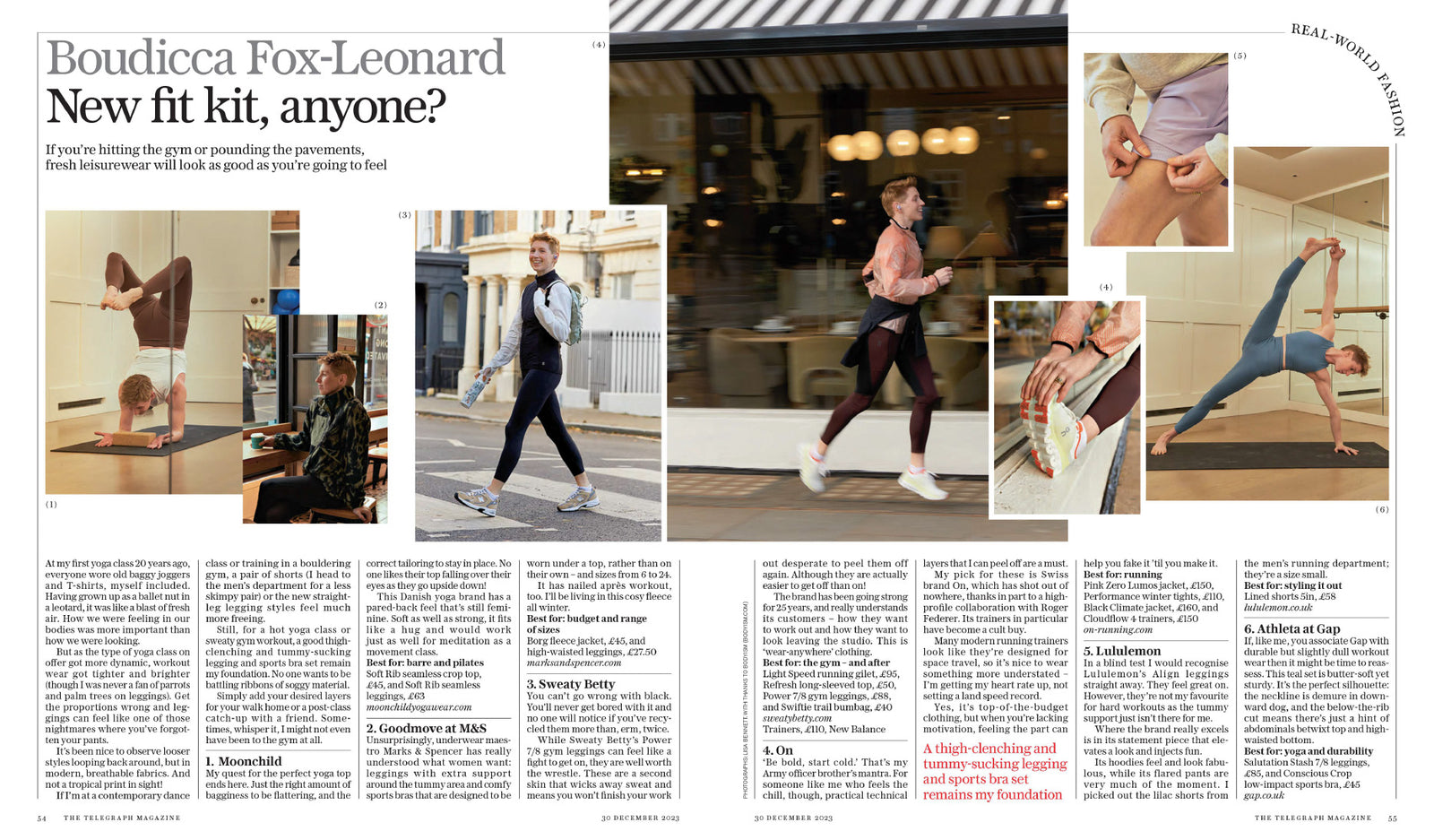 Once again, Moonchild Yoga Wear is showcased in UK-based The Telegraph Magazine. We've been chosen as the top leisure brand to help you look as good as your training will make you feel.